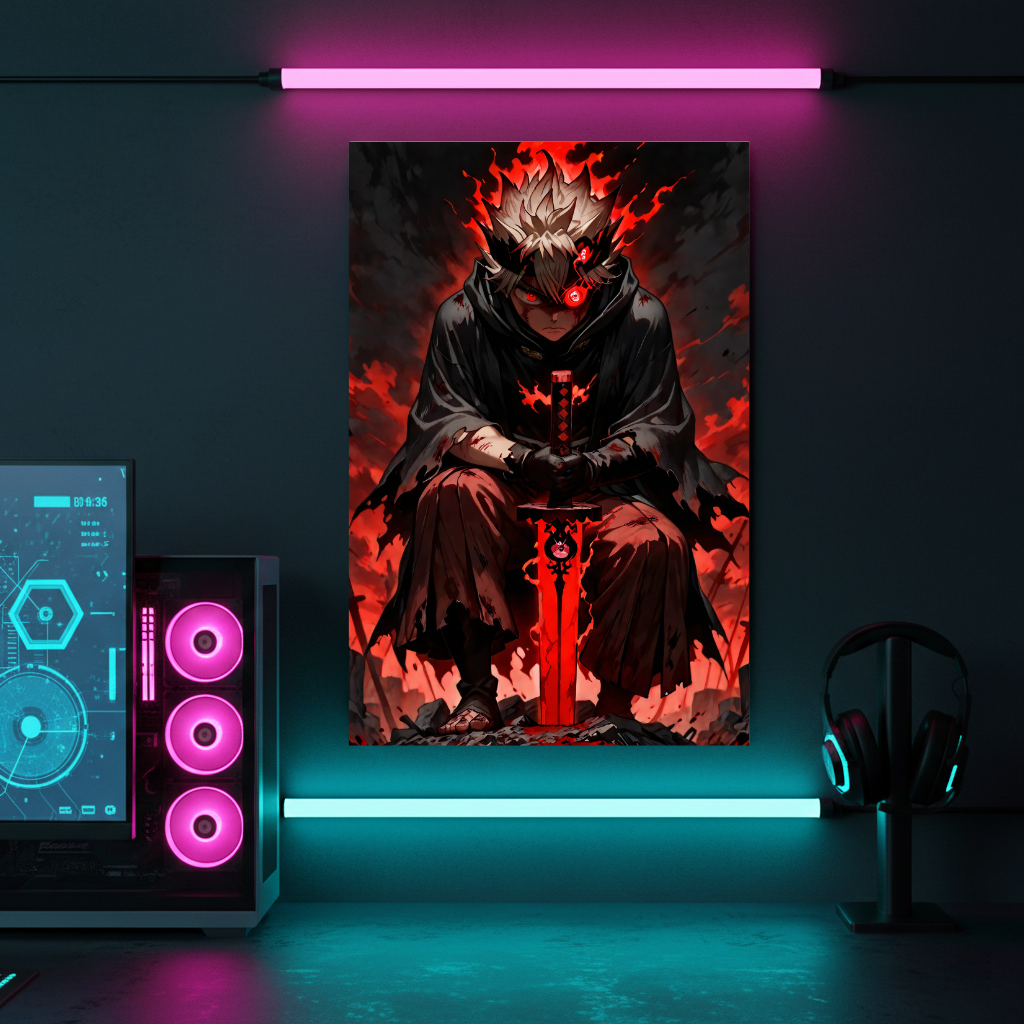 Black Clover Asta Devil Union Metal Poster – Red Flame Intense Art