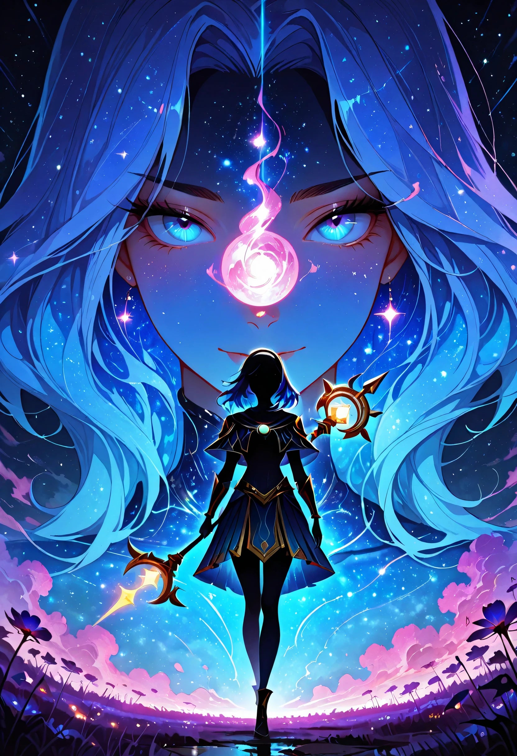 Boundless magic captured on metal. Lux is presented here in a double-exposure style , her silhouette merging with the infinite expanse of a nebula. The aluminum Dibond gives the star clusters and galaxies within a deep glow. A mystical design that blurs the line between character and universe.