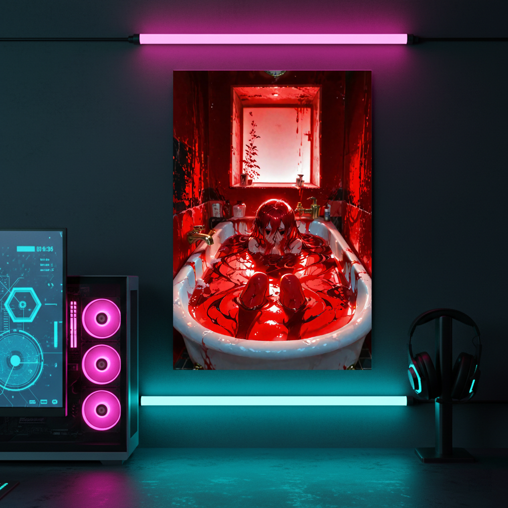 This is the ultimate motif for aluminum Dibond . The material's natural sheen perfectly imitates the surface of blood. Depending on the light in your room, the liquid appears vibrant and dynamic. A silent yet deadly eye-catcher.